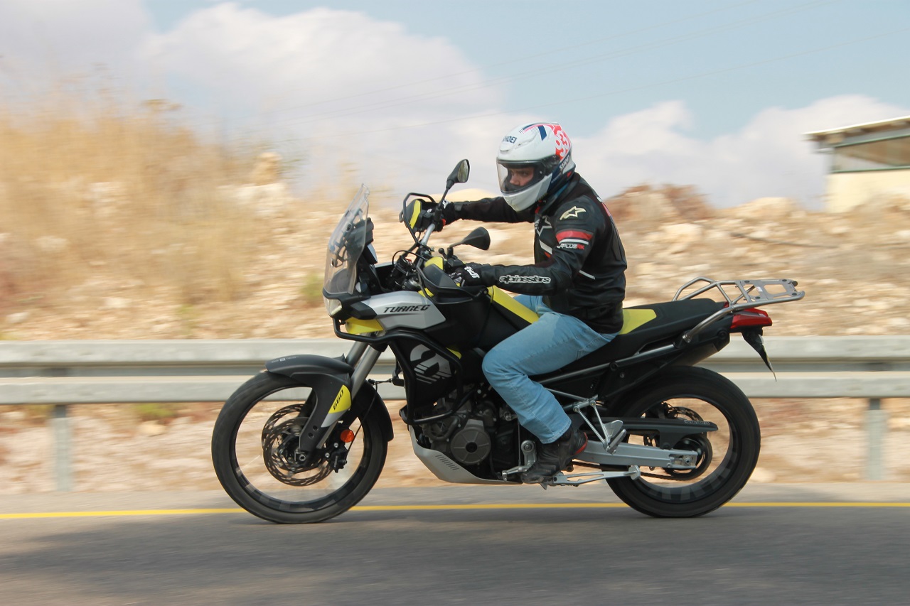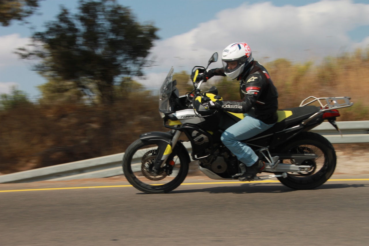 את מנוע הטווין המקבילי, בנפח 659 סמ"ק, אהבנו בשני הדגמים האחרים, וכאן הוא מספק 79 סוסים ומומנט מרבי של 7.1 קג"מ. בשונה מדגמי הכביש, כאן הוא מכוון כדי ליצור תחושה שונה, בהתאם לייעודו, וזה מתבטא בפעולה ליניארית, נשלטת ואינטואיטיבית. התוצאה היא אופנוע לא מאיים שמיד מרגישים עליו בבית.