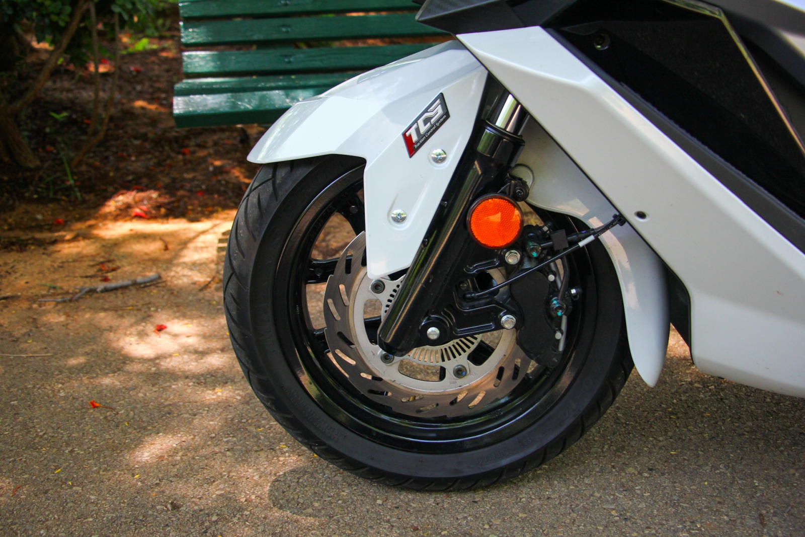 המתלים אכן מתפקדים טוב כל עוד שלא מופעל עליהם עומס גבוה. לבולם האחורי יש אפשרות לכיוון עומס קפיץ, וגם לקרוזים – כמו לעוד ועוד קטנועי 300 סמ"ק – יש מערכת בקרת משיכה שאפשר לנתק אם היא מעיקה. צריך לזכור שאנחנו הרי לא מדברים על קטנוע עם עודף כוח, ובכל זאת יש לבקרת המשיכה ערך בוודאי בחורף על כבישים עם רמת אחיזה ירודה (שזה אומר רוב כבישי ישראל מיד אחרי גשם ראשון), וגם ברכיבה עירונית כאשר רוכבים מעל פסי צבע ומעברי חציה חלקלקים.
