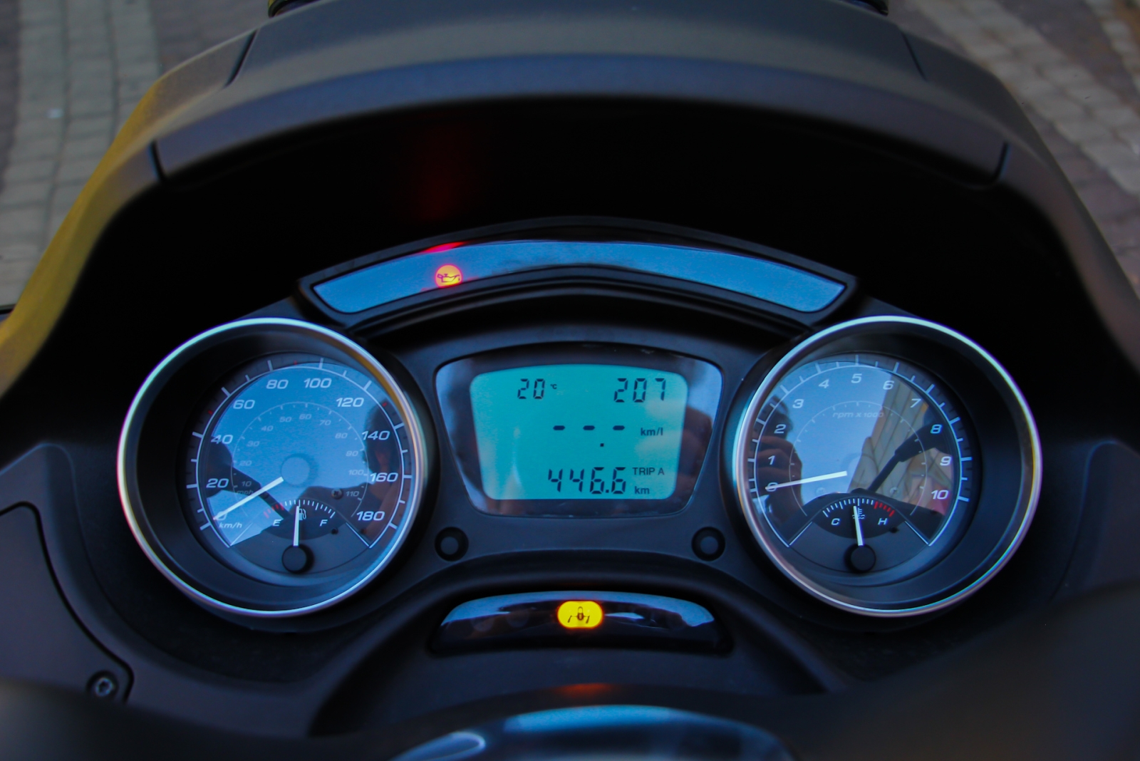 גובה המושב מכתיב מיקום גבוה של הרוכב מעל הכידון, וזה יוצר תחושה של ישיבה מעל הקטנוע ולא "בתוכו". ההרגשה הראשונית לא נוחה אבל ככל שמתרגלים לכך מתגלה תנוחת הרכיבה כמצוינת. עם זאת, לוח השעונים נמוך מדי ונדרשת הורדת ראש משמעותית כדי לדלות ממנו מידע.