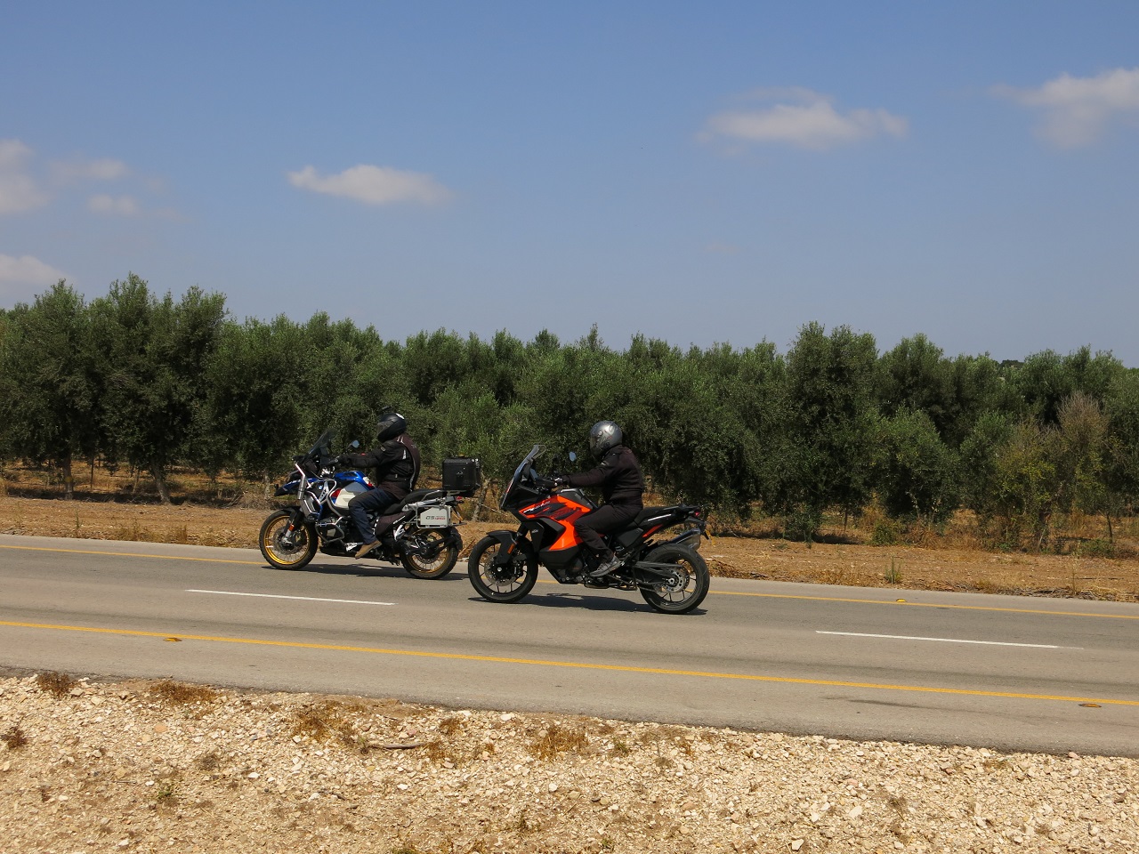 ב.מ.וו, לעומת זאת, בנו אופנוע כבד ב-15 קילוגרמים ואותם מושך מנוע בוקסר בנפח 1,254 סמ"ק אשר מייצר 14.6 קג"מ ב-6,250 סל"ד. בשונה מהכתום, הכחול אף פעם לא מפתיע או משתולל, ולבוקסר הגדול שלו יש אופי זורם ו"בשרי". לומר עליו שהוא "בשל, חלק וליניארי" נשמע כמו המובן מאליו, אבל זה בדיוק מה שזה. התוצאה היא אופנוע בטוח בעצמו, בוגר ומנומס, אשר משרה ים של ביטחון ועוצמה גם אם הקצב שלו מהיר בהרבה ממגבלות הרוכב.