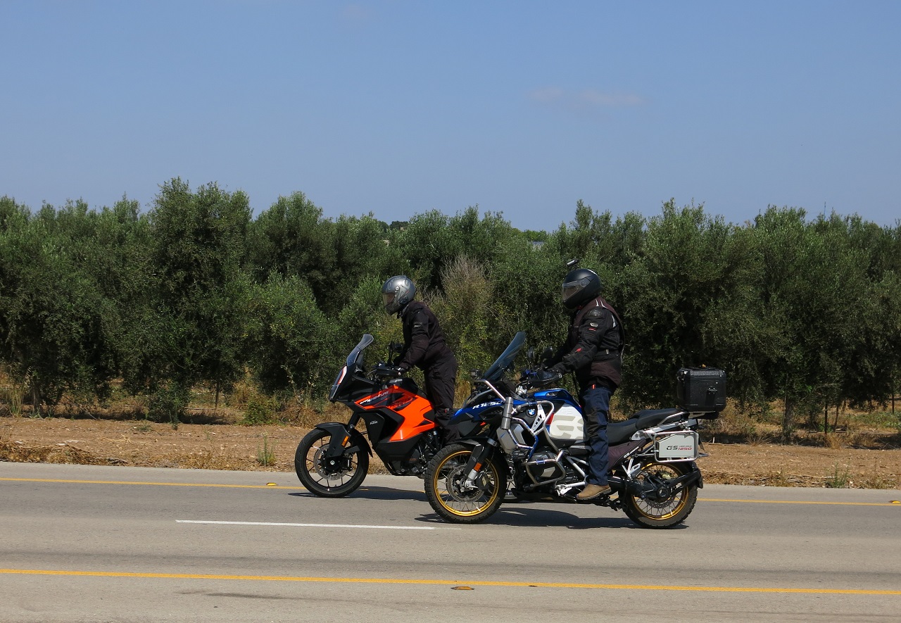 אל מול אגדת ה-R1250GS וגרסאותיו השונות מתייצב מתחרה ראוי, משוכלל ומגוון ביכולותיו הדינמיות והטכנולוגיות. הב.מ.וו. שוקל רק 15 קילוגרם עודפים ולמרות זאת משדר תחושה יותר כבדה. הק.ט.מ, לעומתו, קשיח יותר כדי ליצור תחושה ספורטיבית.