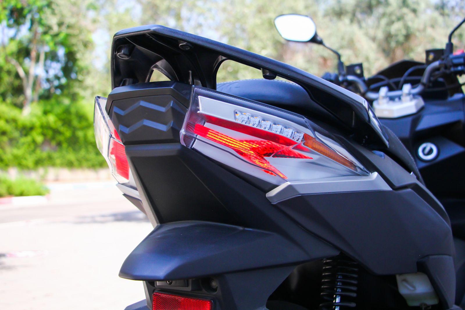 סאן יאנג מייעדת את ג'ט X להתמודד מול מצטייני קטגוריית ה-125 כמו הונדה PCX וימאהה NMax, מה שהצריך שדרוג משמעותי לעומת ג'ט 14 (שעדין נמכר במקביל). ג'ט X מציע עיצוב עדכני עם חזית ספורטיבית יותר, כשהוא מוותר על הרצפה השטוחה לטובת שדרה מרכזית גבוהה – כי מי שרוצה להיראות טוב על הקטנוע לא סוחב שקיות מהסופר בין הרגלים. במבט מהצד הוא מזכיר לא מעט את ה-PCX אותו הוא שם על הכוונת, אבל החזית עם הפנסים המופרדים, מסיט הרוח שנמתח מטה עד הפנסים וחיתוכים זוויתיים על הפלסטיקה משווים לו מראה ייחודי יותר אם כי לא מקורי ויוצא דופן כמו ה-DGR שבחנו כאן לאחרונה.