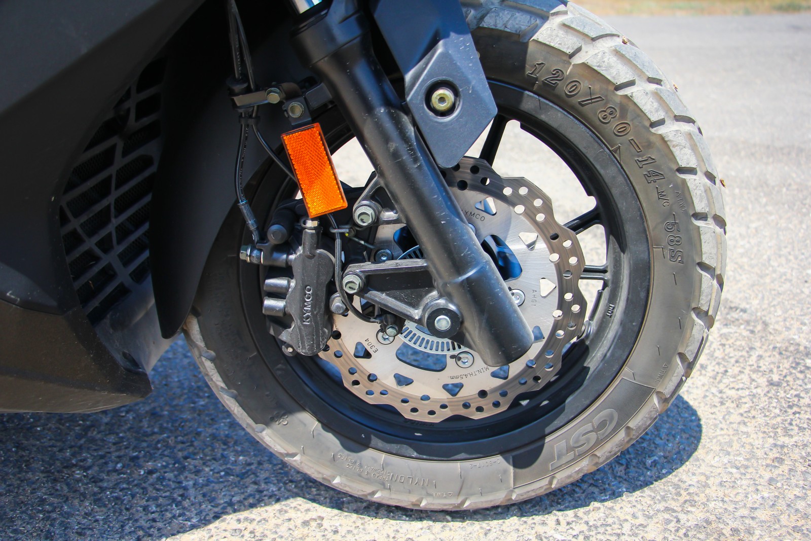 מידות החישוקים זהות לאלה של דאונטאון – 14 אינטש מלפנים ו-13 אינטש מאחור, וזה אומר שמהנדסי קימקו ויתרו על האפשרות להקנות לו מרווח גחון עדיף. מצד שני, וגם זה לפי צו האופנה, הם נעלו על החישוקים האלה צמיגים בשרניים עם פרופיל קוביות, ואלה בהחלט משלימים עיצוב מוצלח ומספקים יותר אחיזה מחוץ לאספלט. כמה חבל, לכן, שסכמת הצביעה הכהה של הכלי שקיבלנו למבחן מסווה ומעלימה את כל פיתוחי הגוף האלה… אם כבר בוחרים בקטנוע הזה אנחנו ממליצים על שילובי הצבעים הבהירים יותר, ובפרט על הסכימה הכתומה.